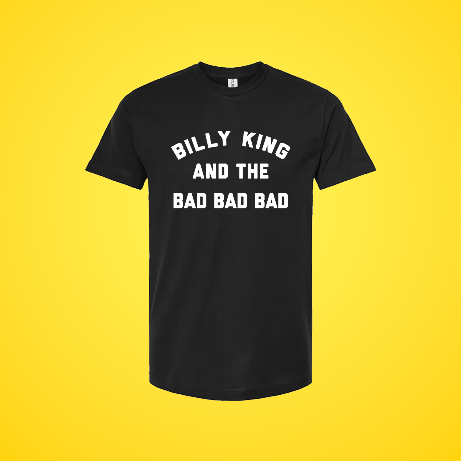 Classic white Billy King and the Bad Bad Bad logo on a black Next Level Tee.